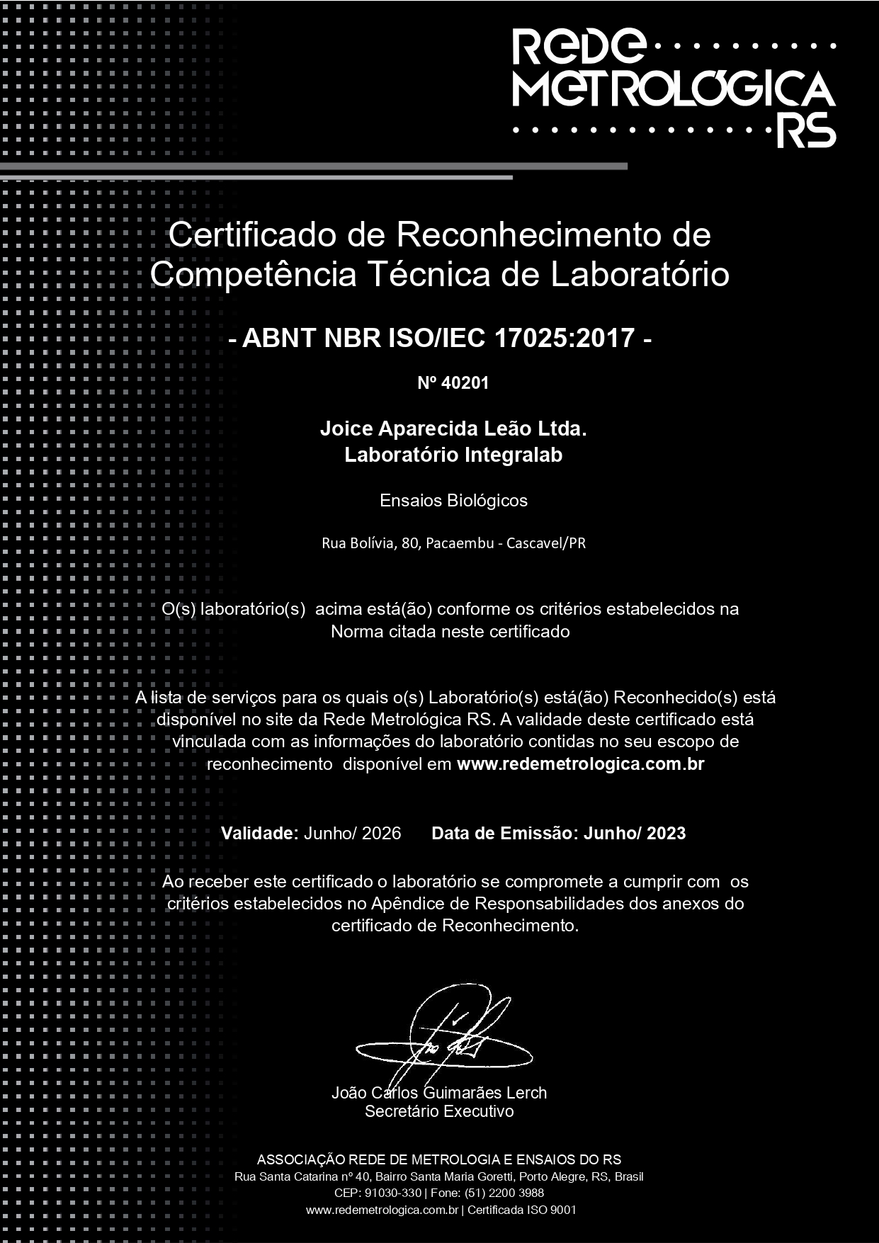 Certificado ISO 17025:2017 e Escopo de Reconhecimento